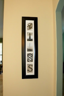 I absolutely LOVE this frame. One of my friends/co-workers in Mesquite made this for Danny and I as a present. I'm so clueless it took me forever to realize that the pictures spelled out "Glass." And then she told me that she actually took the pictures as well! She's so crafty and talented. :)