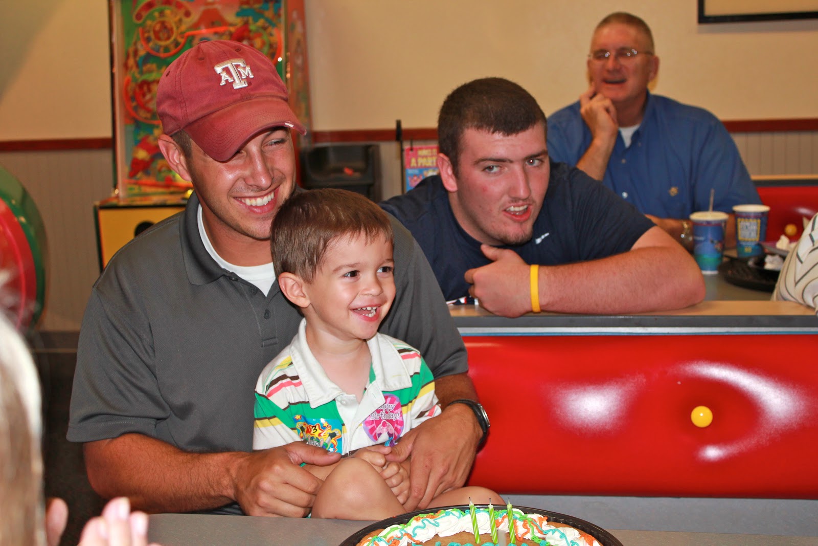 After picking him up from school, we headed into Austin for Chuck E Cheese! Some of our parents and siblings met us there. Ruston had a blast playing all the games and taking turns dragging us all around. :)